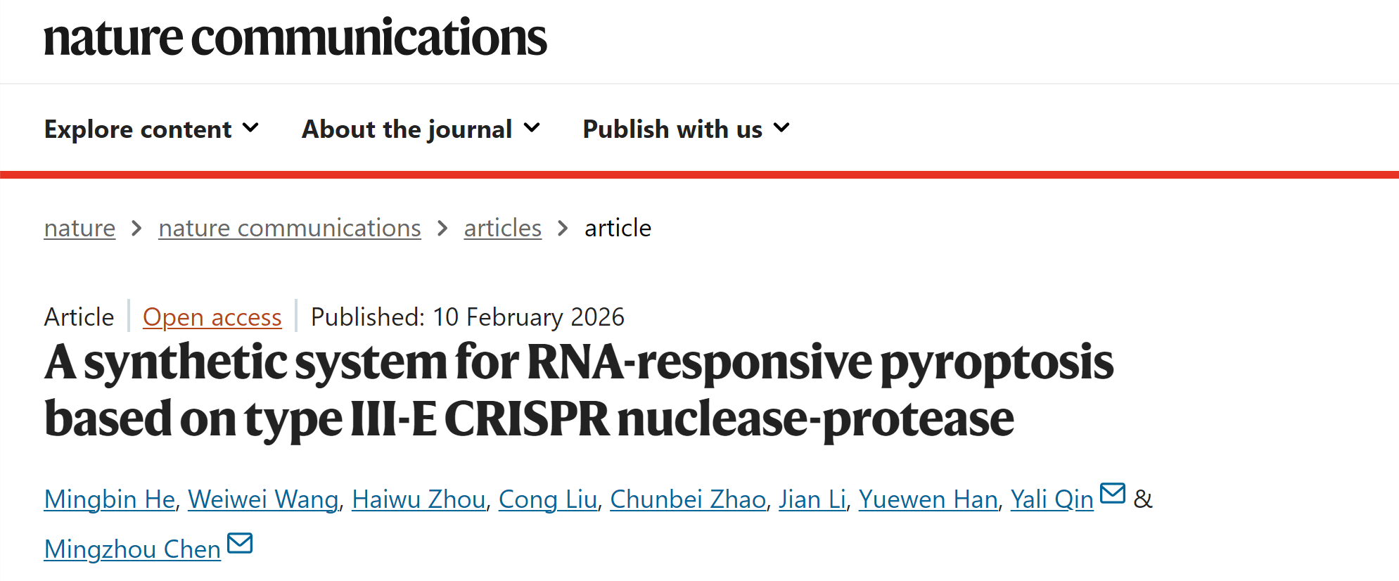 近日,太阳成集团tyc33455病毒学与疫苗研究中心陈明周教授团队在合成生物学领域取得重要研究进展,相关成果以 “A synthetic system for RNA-responsive pyroptosis based on type III-E CRISPR nuclease-protease”为题,发表于国际期刊《Nature Communications》。该工作利用合成生物学技术,成功构建了一种基于RNA响应的可编程细胞焦亡诱导系统——DAMAGE系统,为病毒感染、基因突变相关肿瘤及衰老相关疾病等“RNA异质性疾病”的精准干预提供了全新的策略。