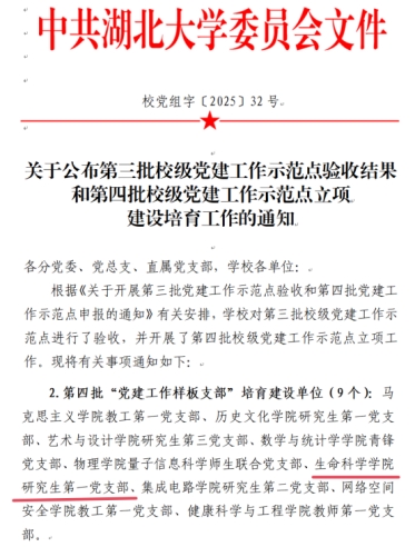 (通讯员:李玉梅)日前,学校正式公布第四批校级党建工作示范点立项培育建设单位名单,我院研究生第一党支部成功入选。