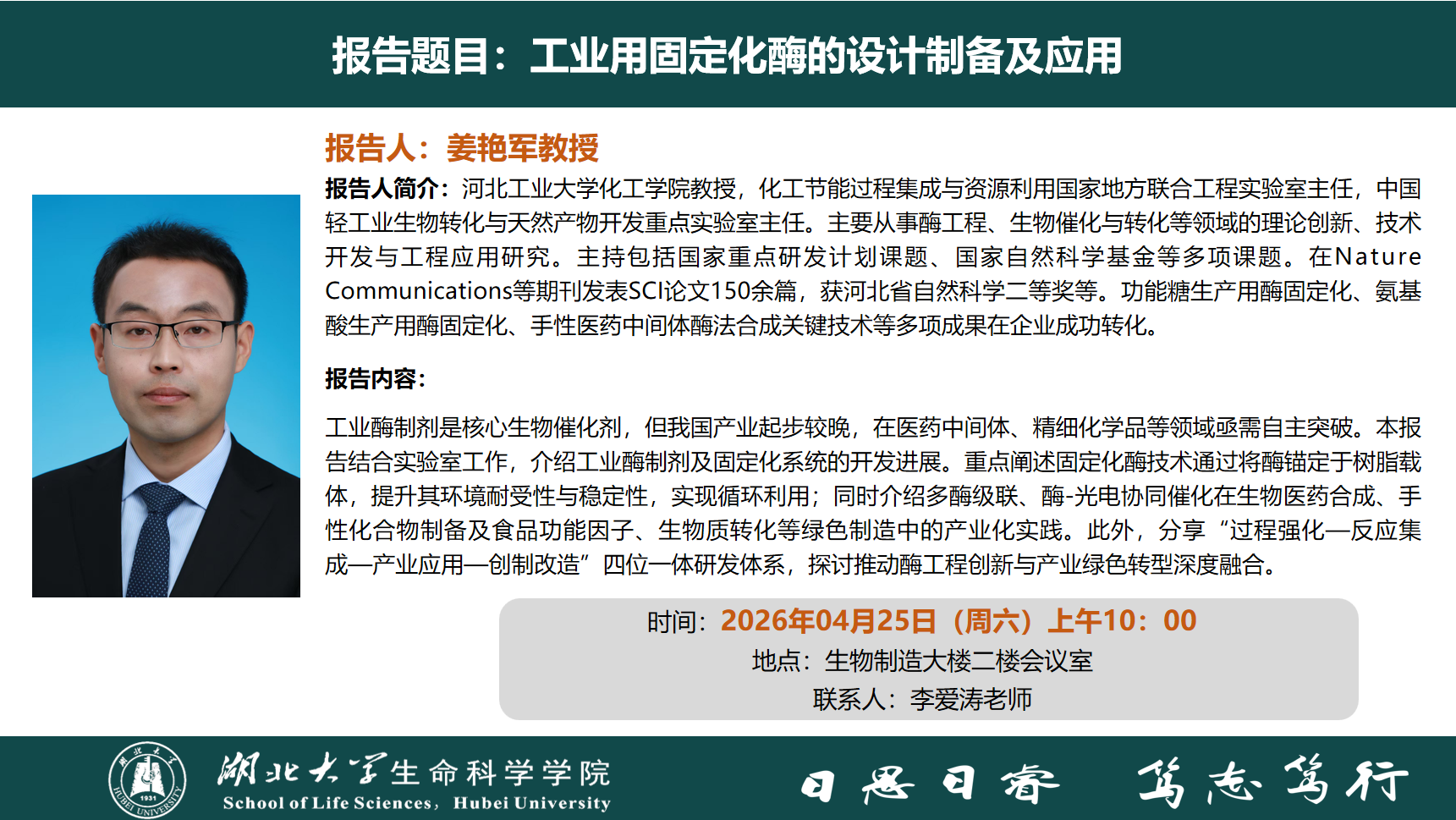 报告人 姜艳军 时间 2026年04月25日(周六)上午10:00