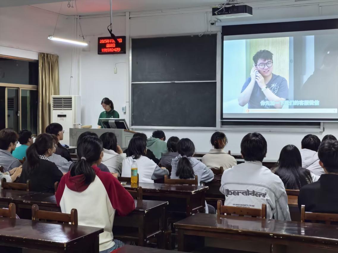 “据统计,截至2025年,全国共破获电信网络诈骗案件约173.9万起。其中,大学生群体约占13.38%。”宣讲人通过一组数据指出,大学生群体社会经验相对不足,但又具备一定的经济支配权,已成为诈骗分子重点围猎的目标。真实的案例与触目惊心的损失金额,让在场的每一位同学都深刻意识到,诈骗并非远在天边的新闻,而是随时可能发生在自己身边的威胁。随后,宣讲人系统解析了兼职刷单、网络交友、虚假购物等高发诈骗类型,并通过案例视频强化认知。