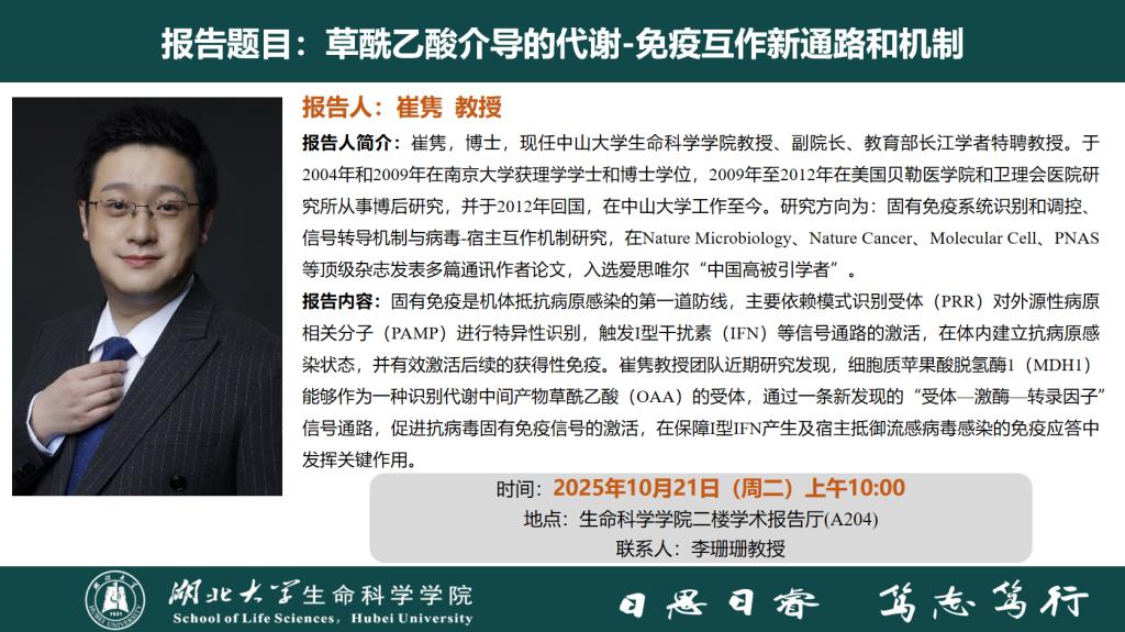 学术报告:草酰乙酸介导的代谢-免疫互作新通路和机制
